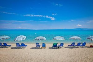 Шезлонги і парасольки на пляжі безкоштовні при замовленні напою або закуски в пляжному кафе, якому належать ці шезлонги і парасольки. В середньому кава, стакан соку, вина або пива коштують 3-5 євро. Також, приблизно коштують Гамбургер або Гірос (грецька шаурма дуже хорошої якості).