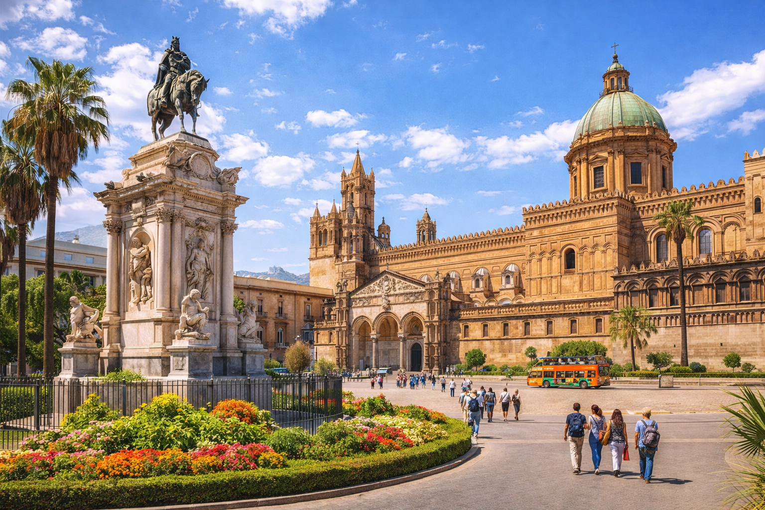 Цей день — справжнє знайомство з Сицилією. Палермо — місто, де арабська розкіш, норманська велич та італійський темперамент злилися в одну неповторну атмосферу. На протязі де кілька століть Сицилія була на перехресті торговельних і політичних шляхів, де кожна цівілізація, що завойовувала цей острів додавала частинку своеї культури і шарму.
