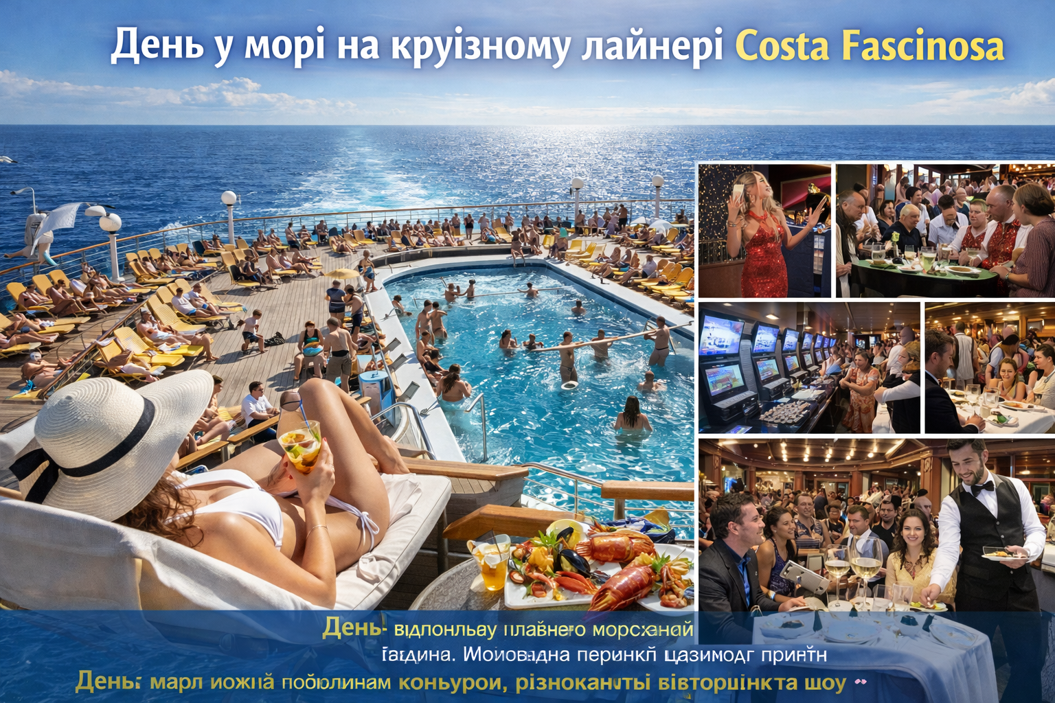 День 4: 29.03.2026 День у морі на круїзному лайнері Costa Fascinosa.